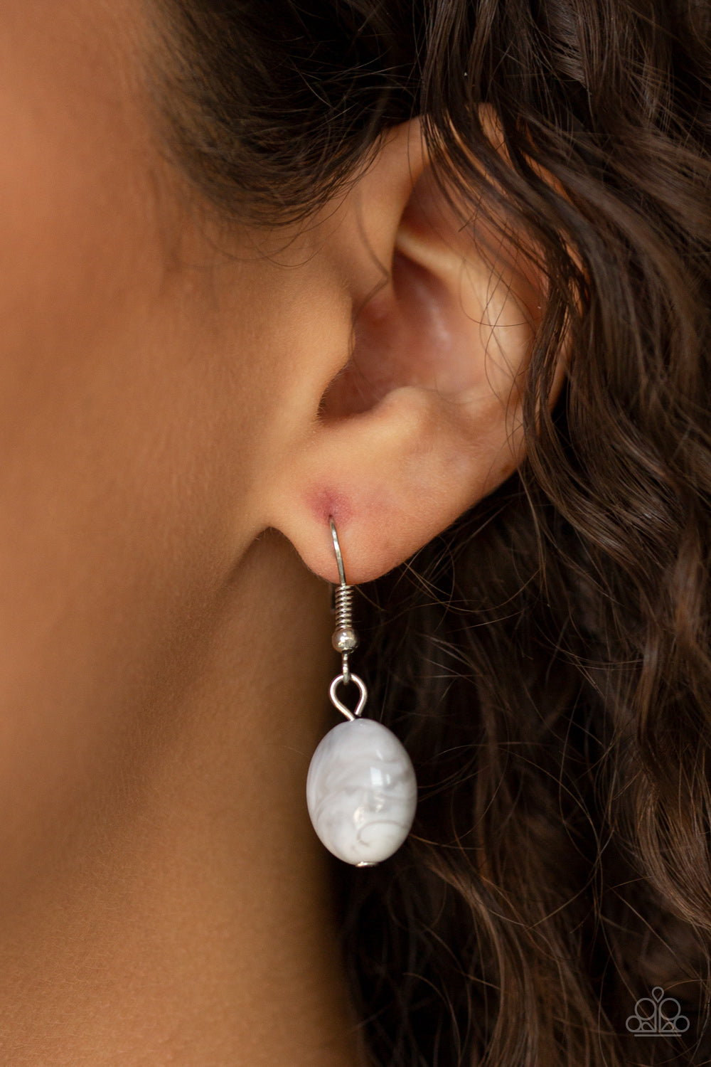 Featuring a smoky finish, a collection of white acrylic beads and shiny silver beads dangle from a classic silver chain, creating a flirtatiously clustered fringe below the collar. Features an adjustable clasp closure.