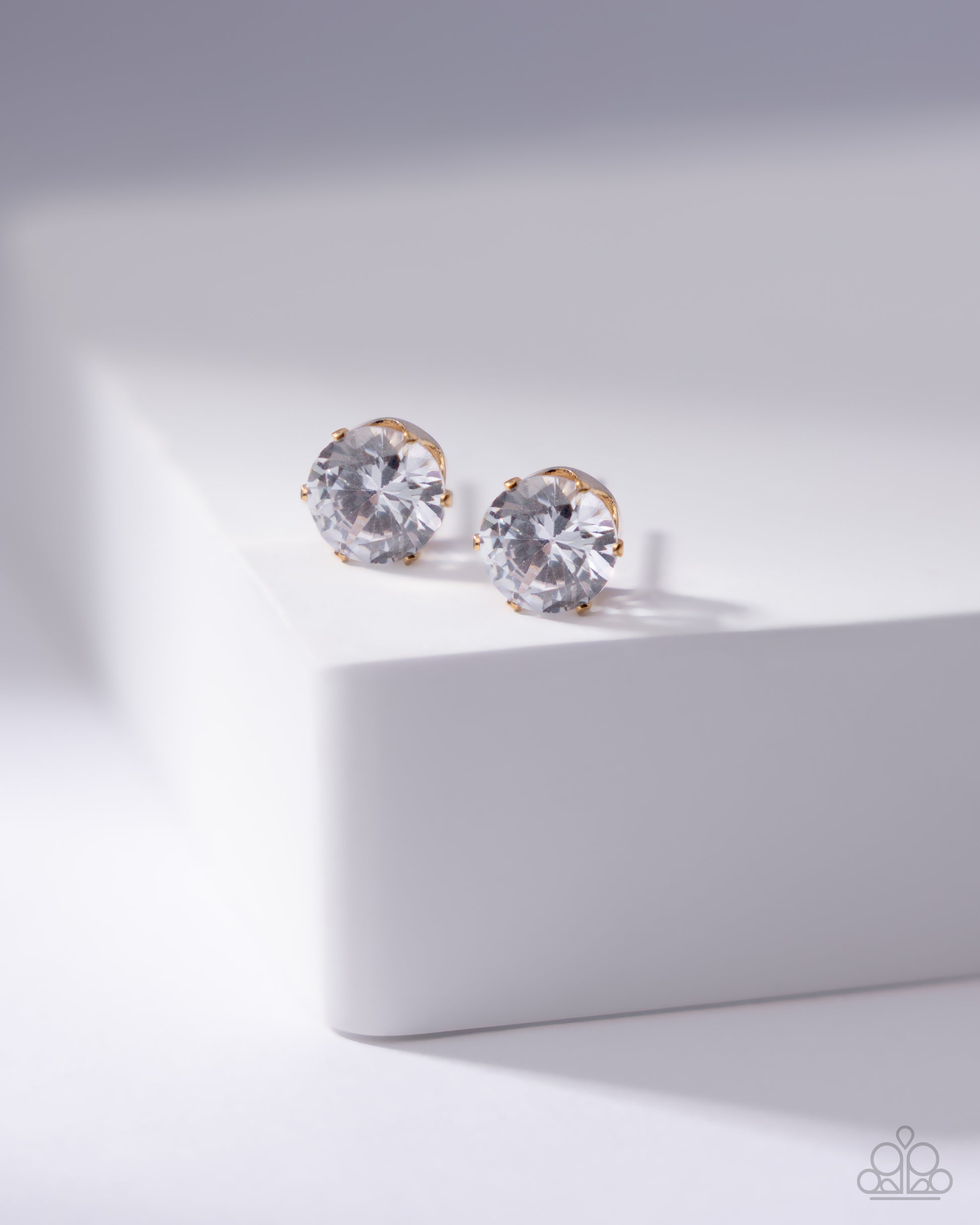 A sparkling white cubic zirconia is nestled inside a classic gold frame for a timeless look. Earring attaches to a standard post fitting.