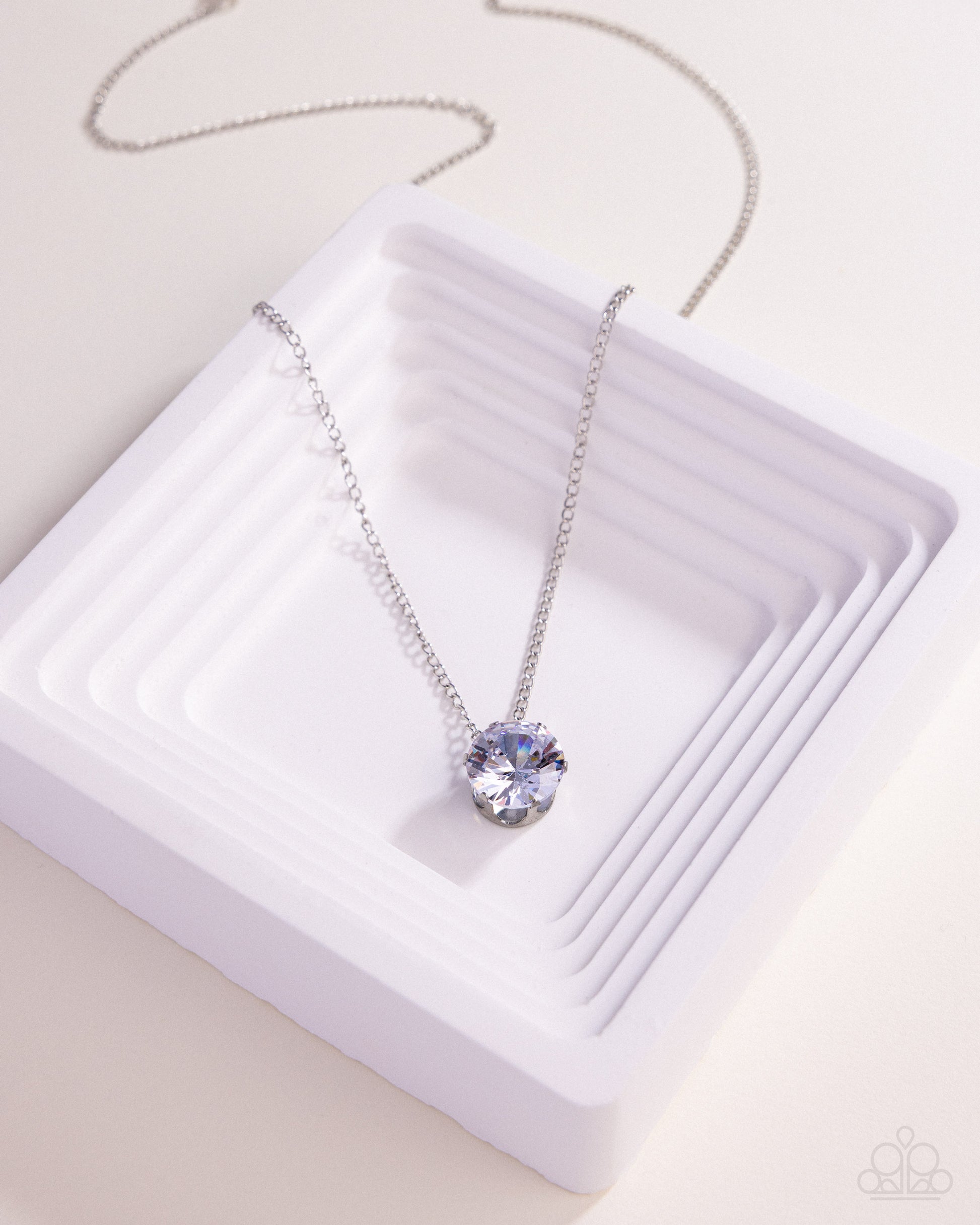 A single white cubic zirconia sparkles brilliantly at the bottom of a dainty silver chain, creating a stunning solitaire design. Features an adjustable clasp closure.